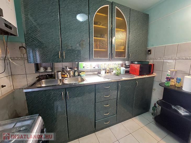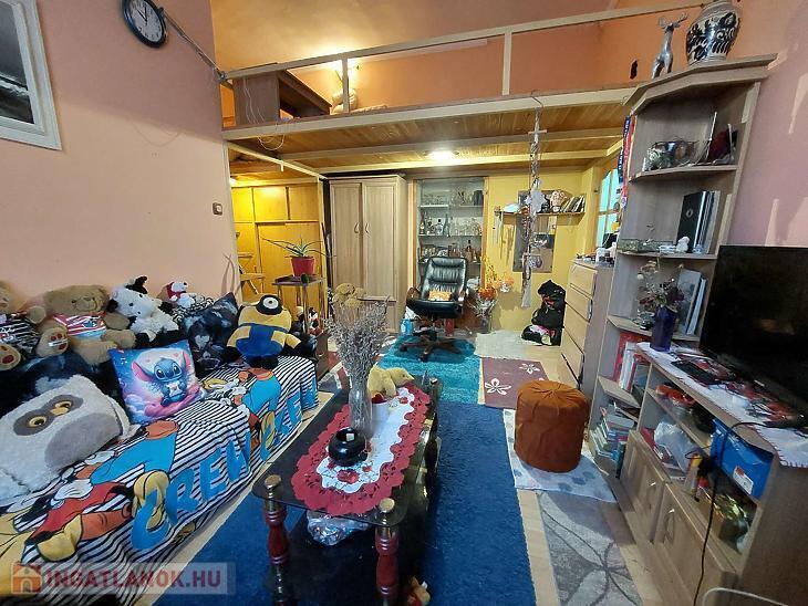 Tágas galériázott nappali, szoba, konyha és zuhanyzós fürdőszoba áll rendelkezésünkre. Fakeretes hőszigetelt nyílászárók vannak A fűtést új kombi cirkó biztosítja. A szoba parkettás, a többi helység járólapos. A galéria rész ideális lehet tárolás szempontjából. A tároló a teraszról közelíthető meg, a lekeríthető kertrész nem közvetlen kertkapcsolat.