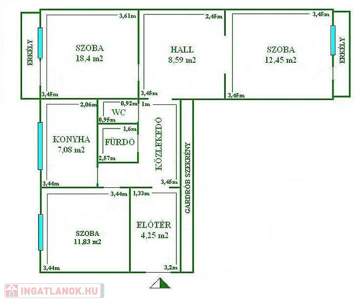 - Az ablakok két oldalra néznek így világos lakás. Két oldalt egy- egy erkéllyel rendelkezik.
