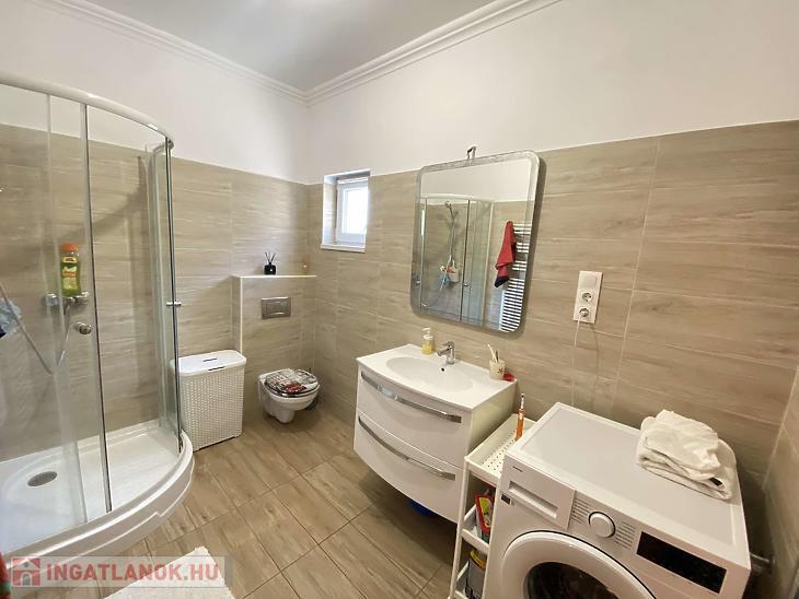 A 60 nm-es lakás világos, jó elosztású. A fűtésünkről kombi cirkó gondoskodik. A nyílászárók műanyag hangszigeteltek. A szobákban jó állapotú laminált parketta a vizes helyiségbe járólap található. Hűtő fűtő klíma beszerelésre került a nappaliba. Ügyvédi használati megosztással és 50 nm kertkapcsolattal rendelkezik.