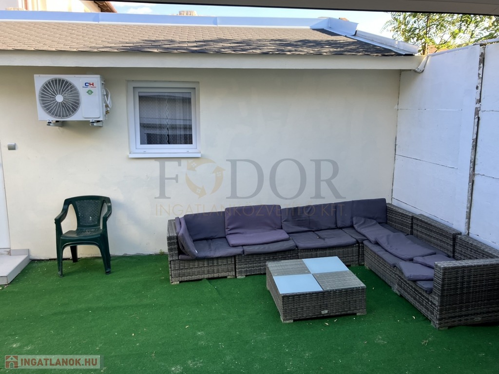 A 30 m²-es kert parkosított, hangulatos kiülővel rendelkezik, és a hátsó telekhatárnál található egy különálló, teljes körűen felújított melléképület, amely önálló szobaként funkcionálhat — akár dolgozószobának, vendégszobának vagy hobbiszobának is ideális.