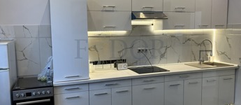 A lakásba lépve egy amerikai konyhás, étkezős nappali fogad bennünket. Innen egy közlekedőn keresztül juthatunk a kertkapcsolatos teraszra, valamint: