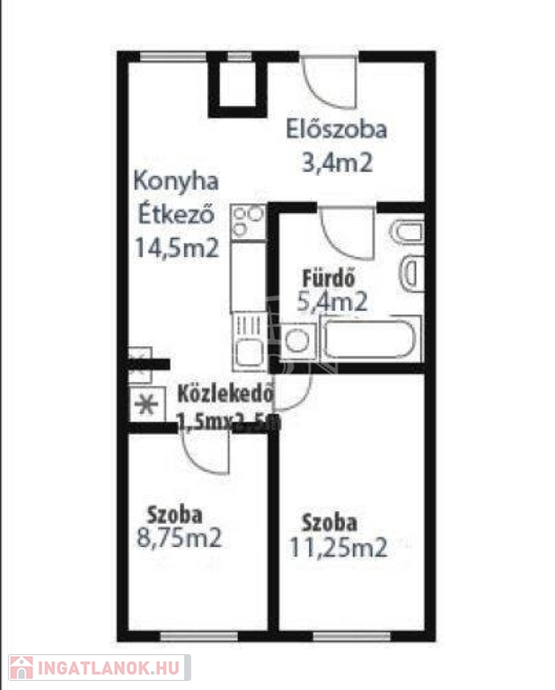 • 2 hálószoba + amerikai konyhás nappali étkező