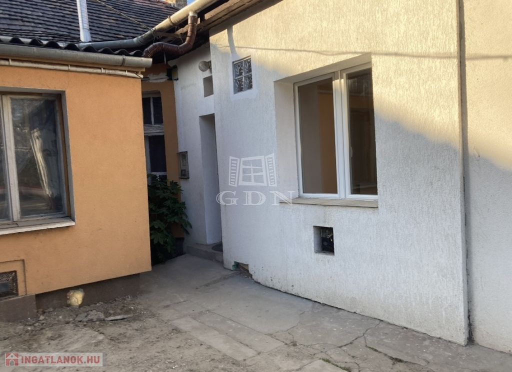 A hirdetésben látható képen a belső udvari bejárat szerepel – a lakás nem a sárga, hanem a mellette lévő fehér épületben található.